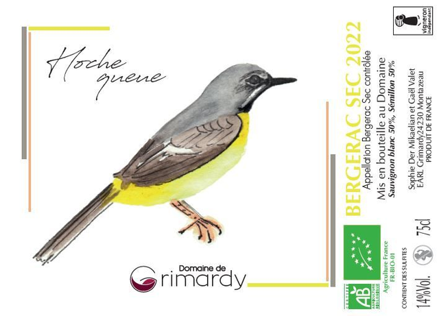 Hoche-Queue, Bergerac Blanc Sec 2022, un vin très fruité, souple, arômes d'agrumes et fruits à noyaux.